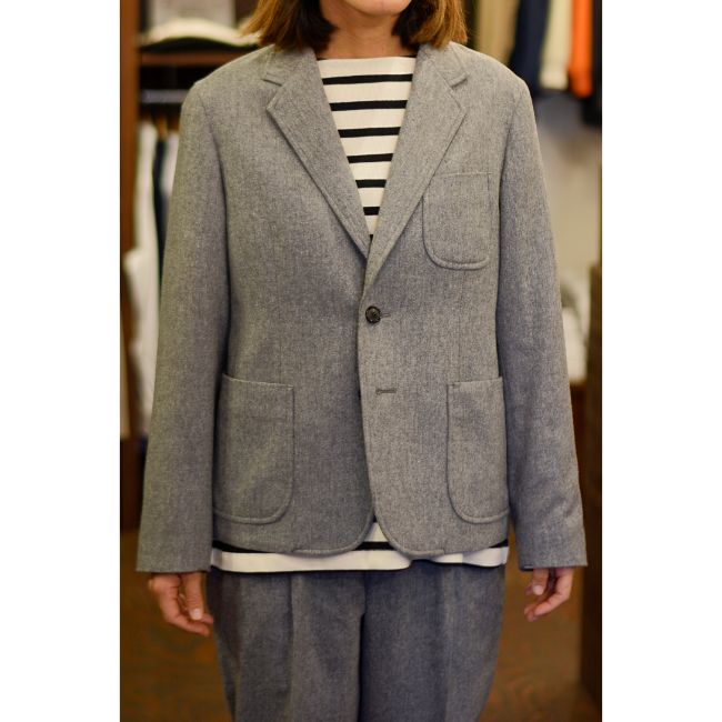 着心地のよいストレッチフランネルのテーラードジャケットです。