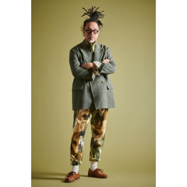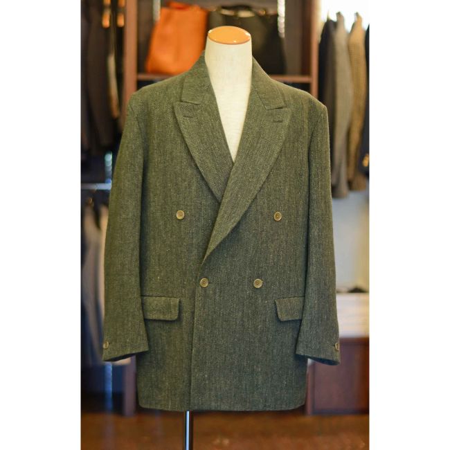 ウールリネンのヘリンボーン生地を使用したクラシカルなダブルジャケット
