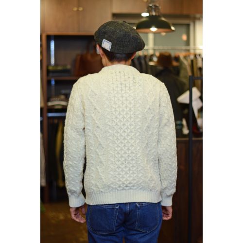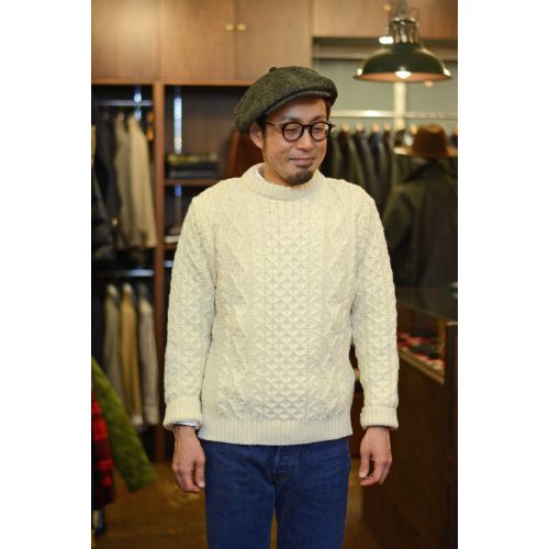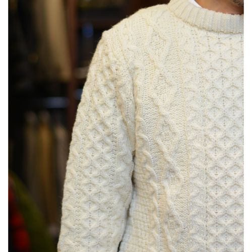 ケリーウーレンミルズの定番アイテムである、伝統的なアランケーブルをモチーフにしたニットセーター。