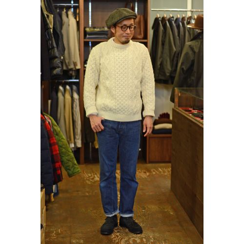 二本の糸を撚った2PLYで編んでいるため、見た目の重厚感は残しつつ、軽快な着心地で現代のライフスタイルに合わせています。