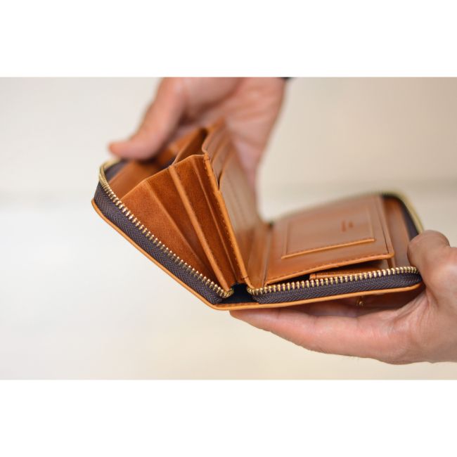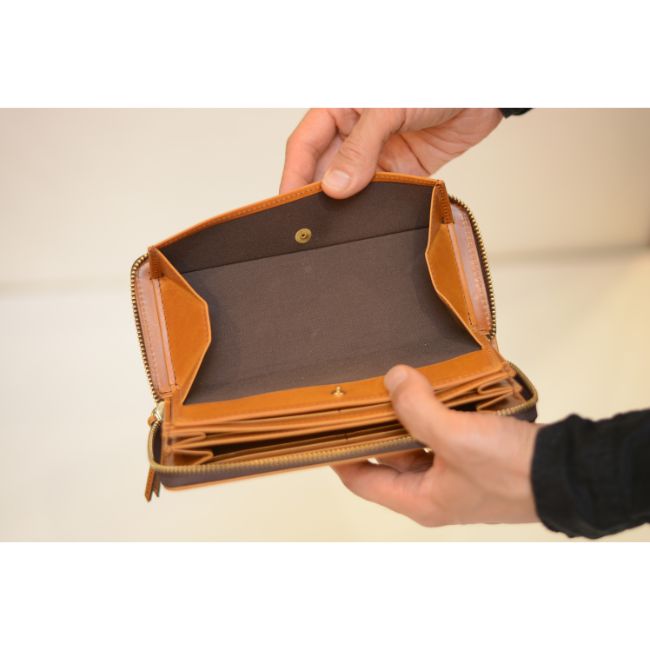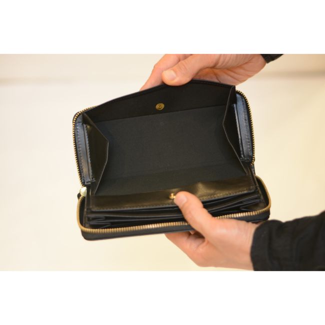 ラウンドジップ仕様で、大きく開き、中身が見やすくなっております。
