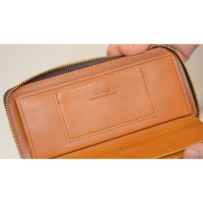 1911年創業の山陽社製の「フルベジタブルタンニングレザー(ヌメ革)」を使用したシンプルで手に馴染みやすいロングウォレット