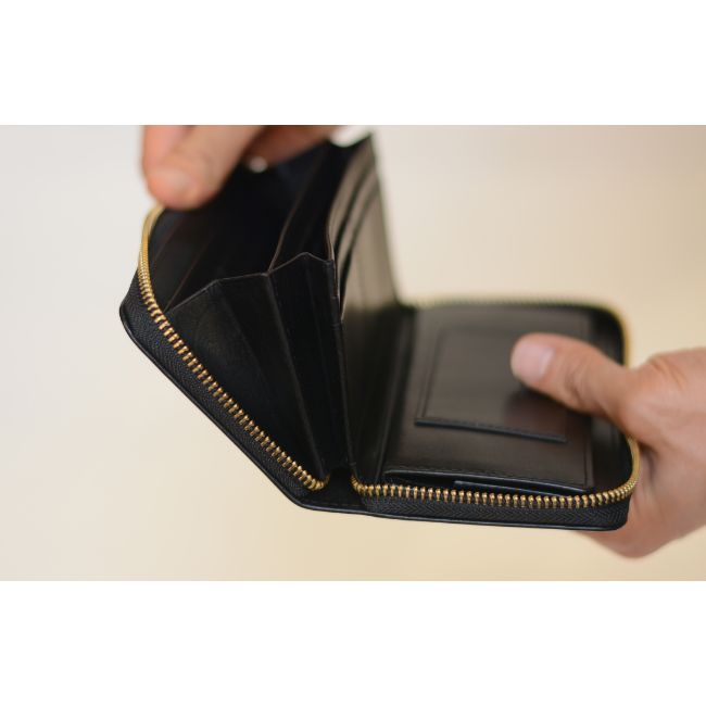 カード収納が豊富で、更にカード室のサイドをジャバラ式にすることで、開けた際に中身が見やすく、取り出しやすさも兼ね備えています。