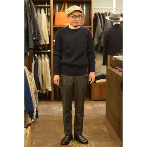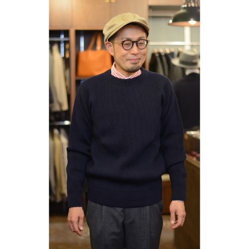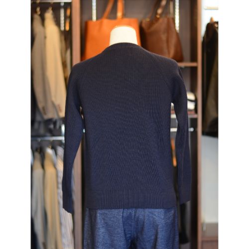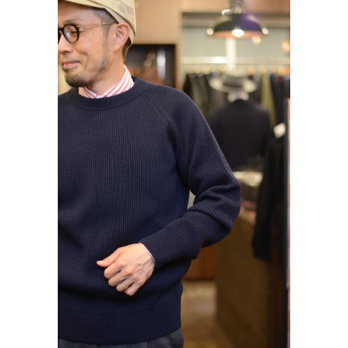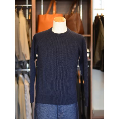 日本国内のニッターにより生産されているぎっしり目の詰まった両畦のクルーネックニット