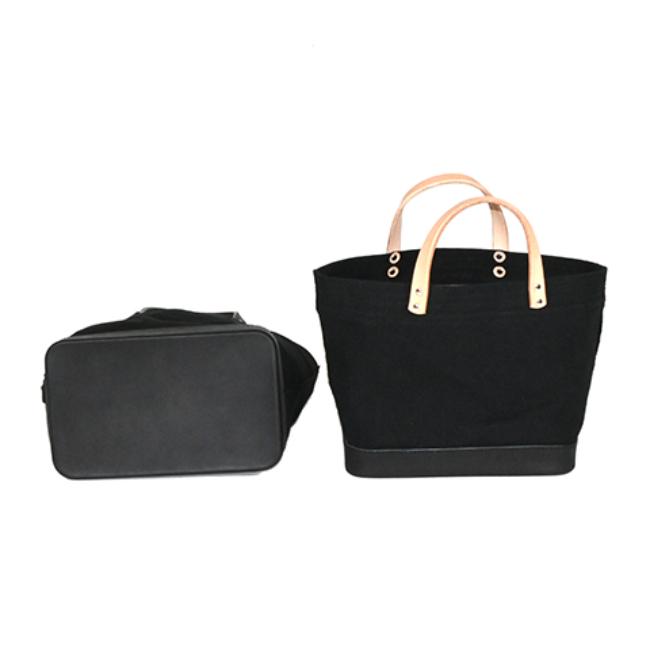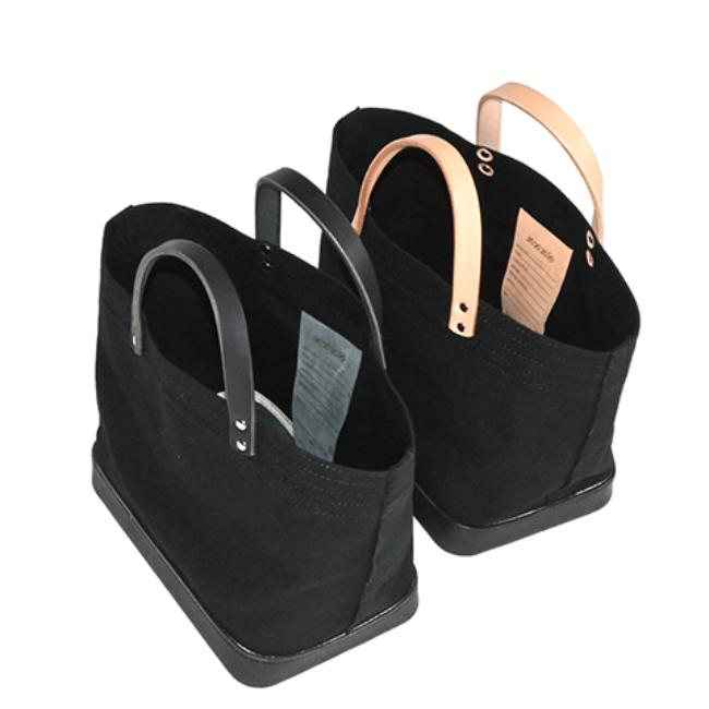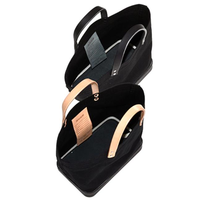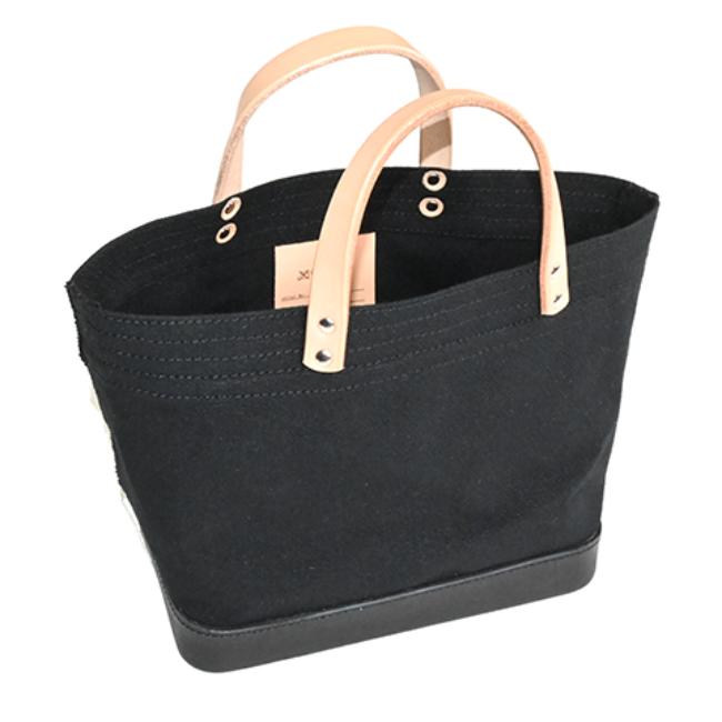 セルビッチキャンバスと革の固めパーツを組み合わせたランチバッグサイズのミニトートです。