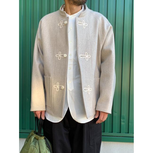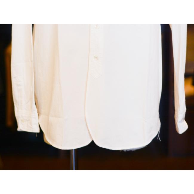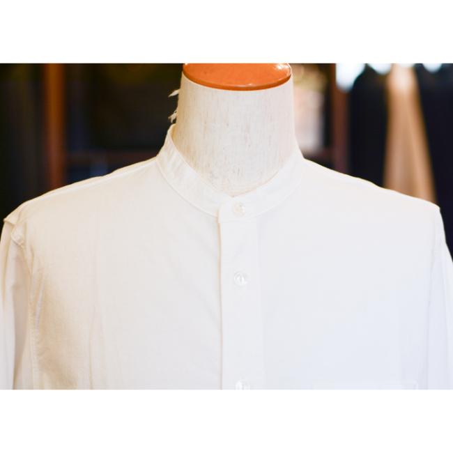 形はイギリス軍で使用されていたバンドカラーシャツをベースにデザインされたクラシックなディテールを持ったバンドカラーシャツです。