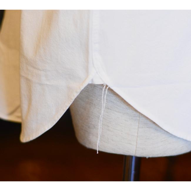 巻き縫いや脇の糸残し、三角マチなどワークシャツのディテールは残して作られております。