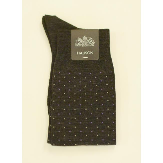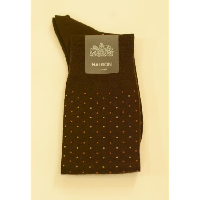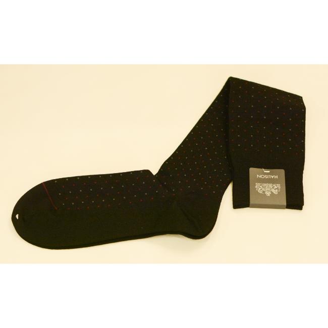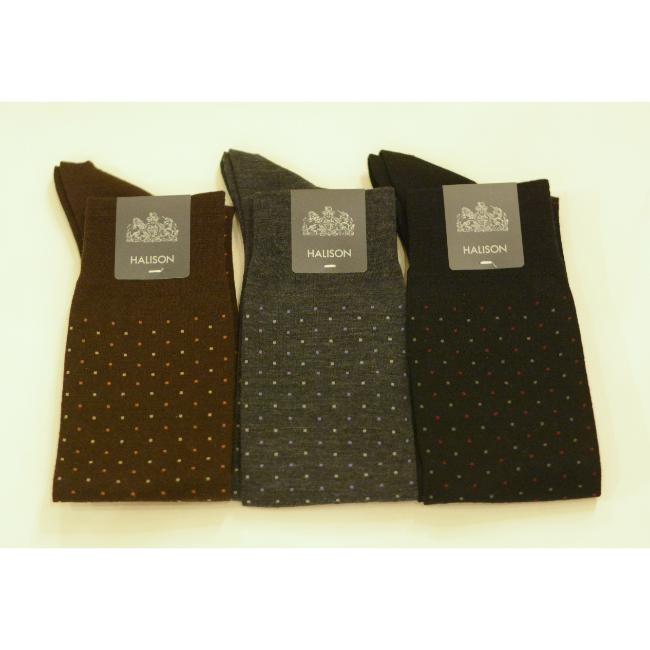 上質ファインメリノウールを使用した2色ドット柄ロングホーズソックスです。