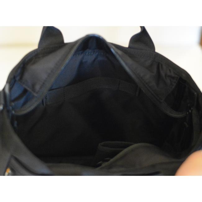 本体はマチ付きのファスナーで開閉式になっており、撥水加工を施したファスナーを使用している為、急な雨でも中の荷物が濡れたり荷物が見える心配がない安心設計になっています。