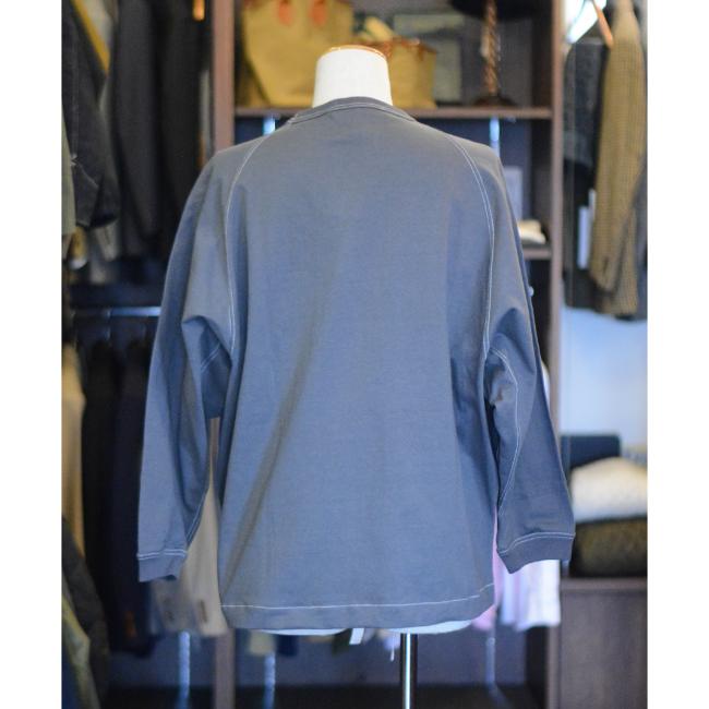 ラグランスリーブの袖下の大きな町が特徴のルーズフィットクルーネックTシャツです。