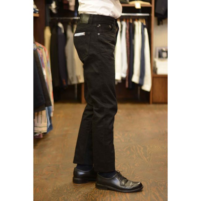 経緯(たてよこ)ともに硫化ブラック染色の糸を使用しているので深みのある色落ちをお楽しみいただけます。