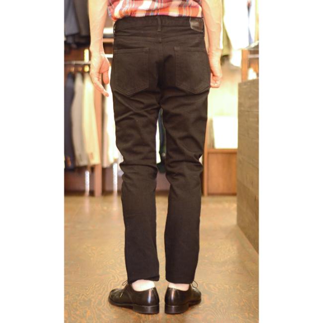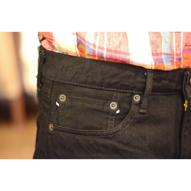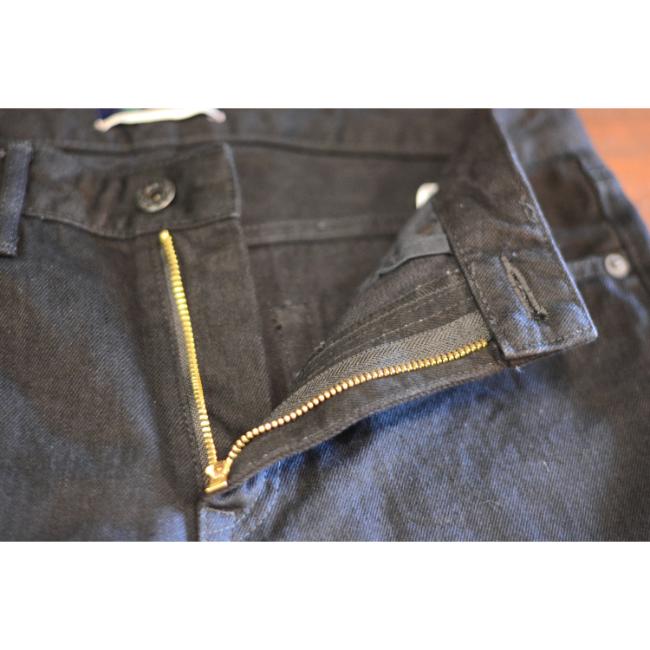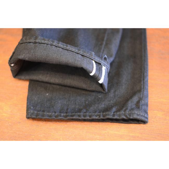 経緯ともに硫化染色の糸を使用した、深みのあるブラックデニムです。