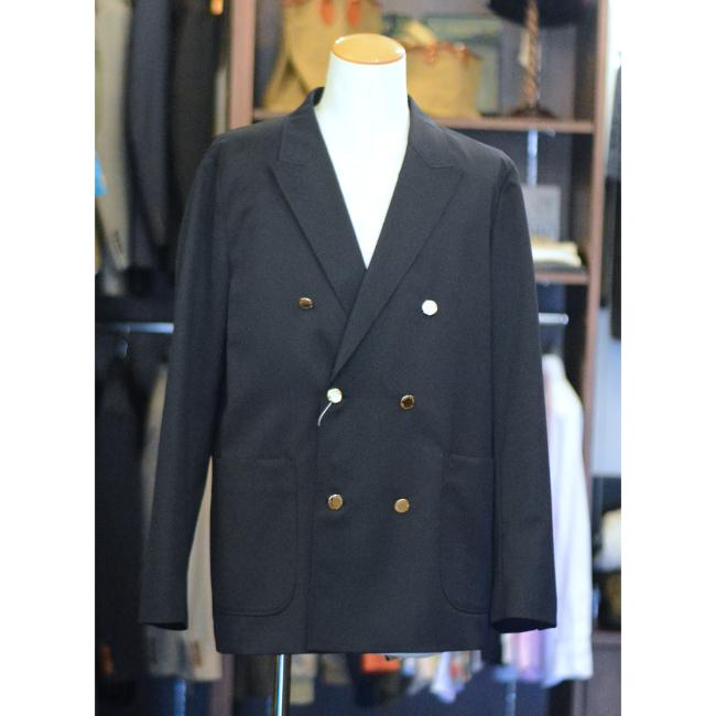 キチンと感がありつつも、Tシャツに合わせてカジュアルにもハマるダブルブレザー