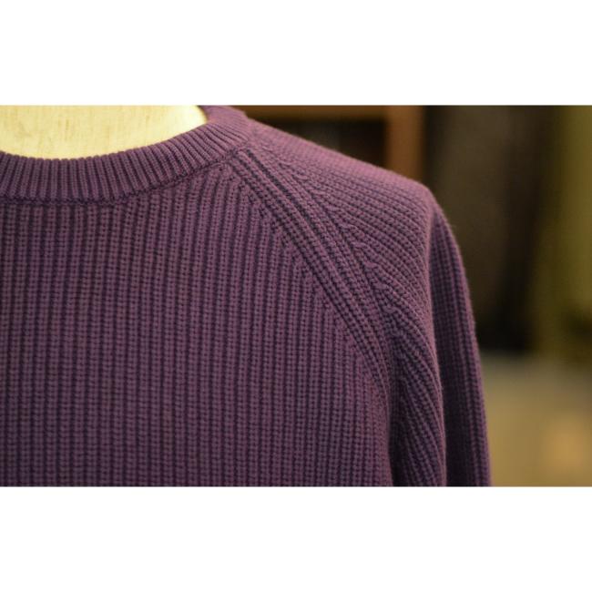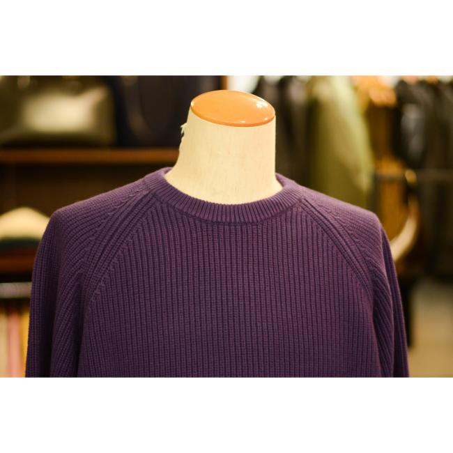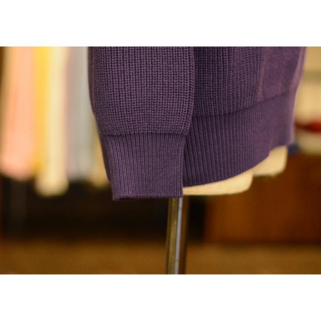 シンプルで無駄がない分、畔編みの表情とがっしりとした重厚感が際立つコットンニットです。