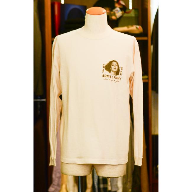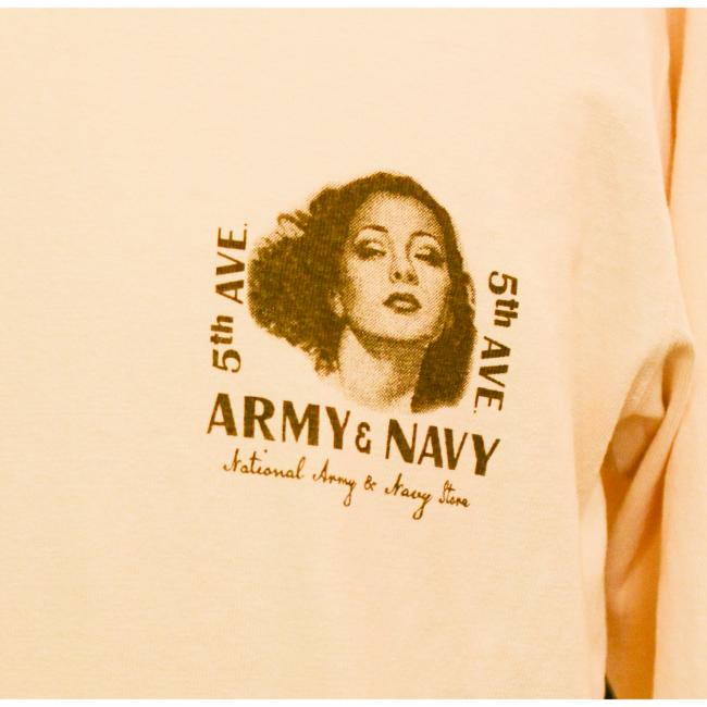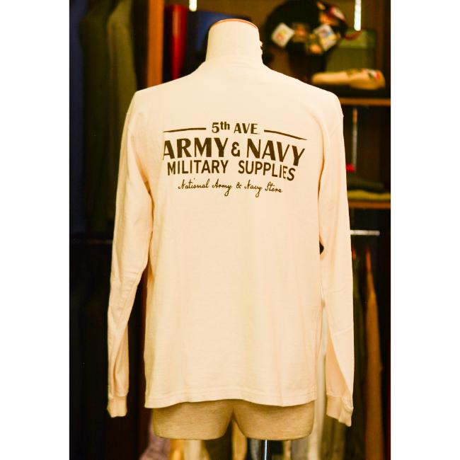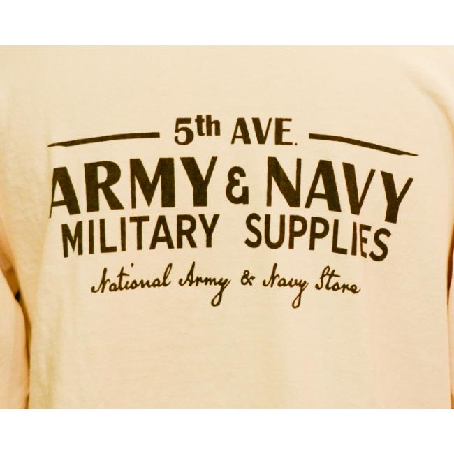 プリントは架空のARMY&NAVY SHOPのスタッフTEEをイメージしてデザインされております。