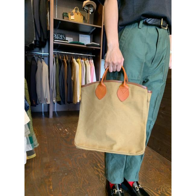 コットンとレザーのコンビのバッグは、シーズンを問わずお使い頂けて、コーディネートを選ばずお使い頂けるアイテムです。