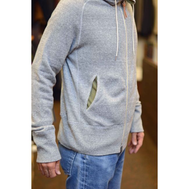 クラシックなスウェットパーカーの素材を再現し、スタイリッシュにモダナイズしたジップパーカー