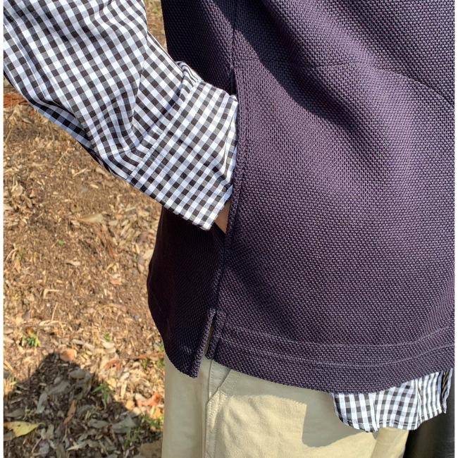 身頃の両サイドには手が入る大きさのポケット付きで、裾にはスリットが付いております。