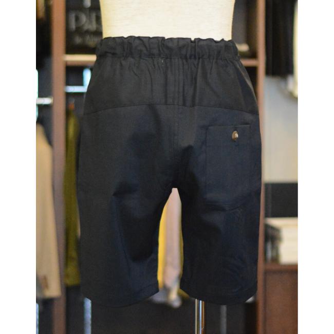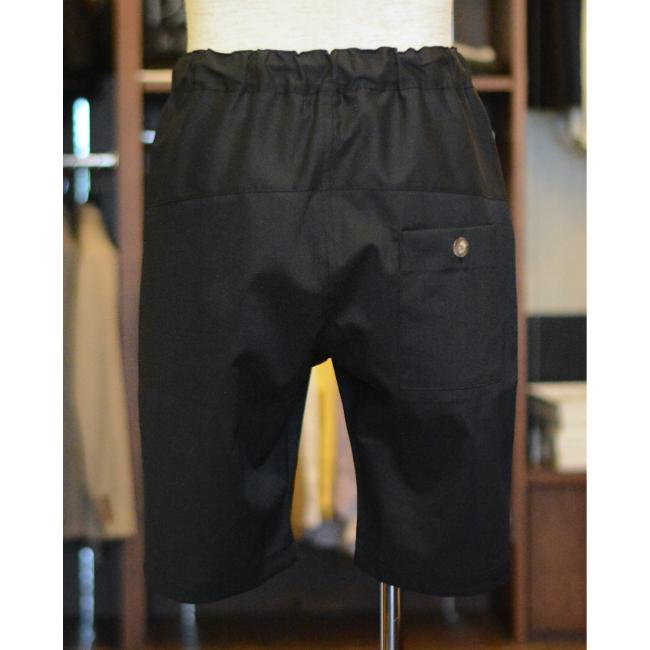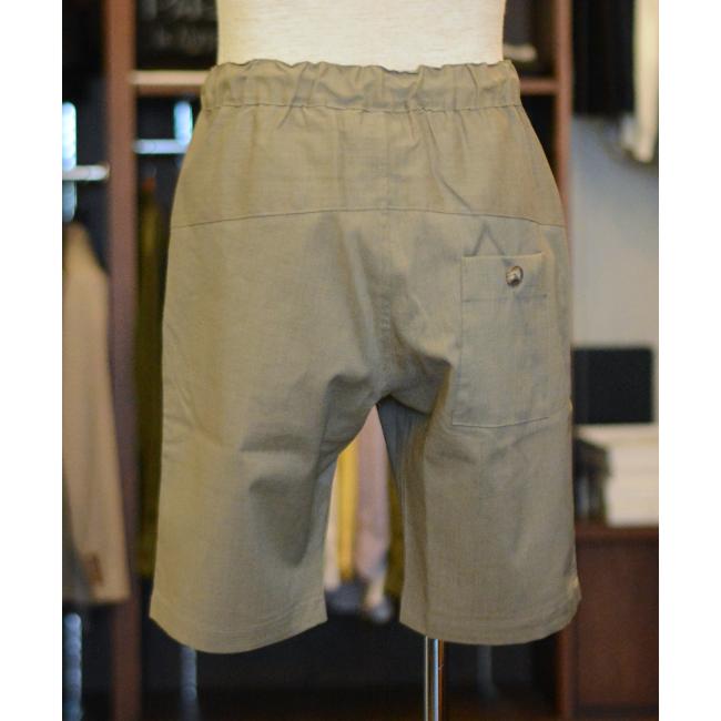 丈夫な素材感でいて通気性もあり快適に過ごせるラミーソロテックスを使用したイージーハーフパンツ