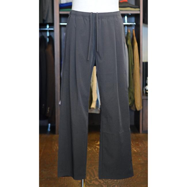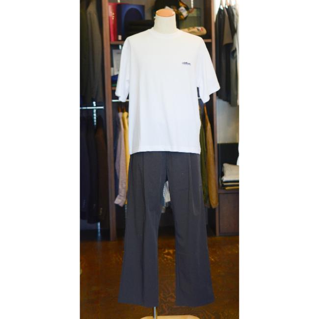 パンツは、フロント部分にタックが入っており、ややゆとりのあるシルエットで緩やかにテーパードがかかっております。