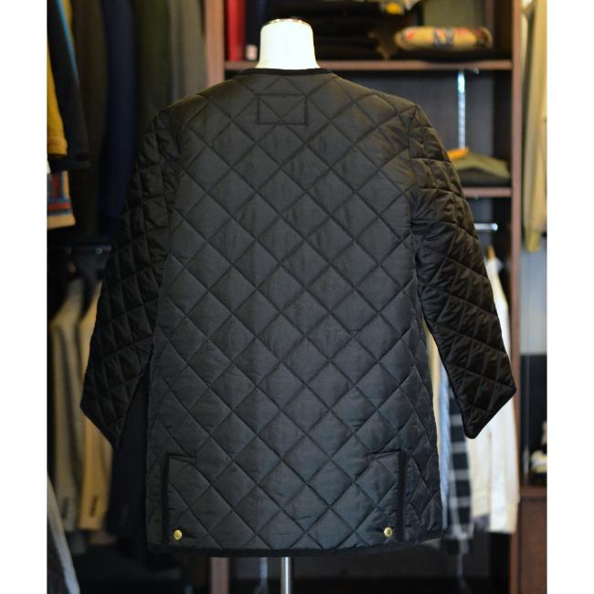 ブランドを代表するベストセラーのノーカラーキルティングジャケット、ARKLEY(アークリー)のミドル丈のAラインモデルです。