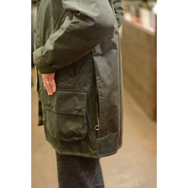 ハンティングで仕留めた獲物を入れておける“Game(獲物) Pocket”や、自然に敬意を払いツィードスタイルで正装したカントリージェントルマンのジャケットも隠れるミドル丈が特徴です。