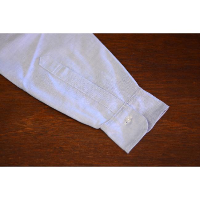 ヴィンテージシャツを参考に、袖口はまくりやすく、襟は綺麗なS字ロールが出るよう、カフスと襟の芯をなくしております。