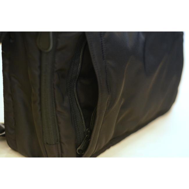 背面側には、14インチまでのノートPCが収まる専用PCポケットを配置しております。
