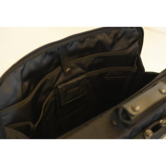 メイン収納部は、内部をひと目で見渡せるよう開口部を大きく設計。 ビジネスツールの仕分けに便利なポケットを適所に配置し、A4書類や手帳、ペンなどの必需品を定位置に収納できます。