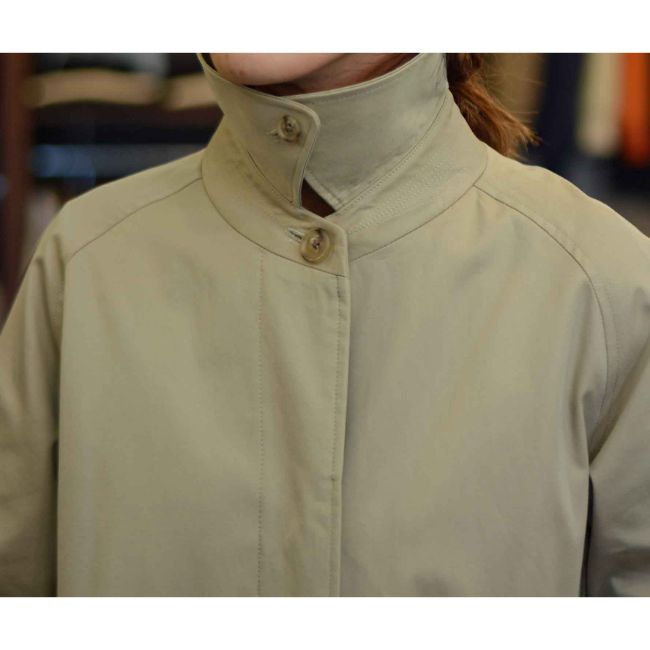 前立ては比翼開き、衿は立ててもキレイな美しい仕立てで、寒い日には首元までボタンを留めて風の侵入を防ぎます。