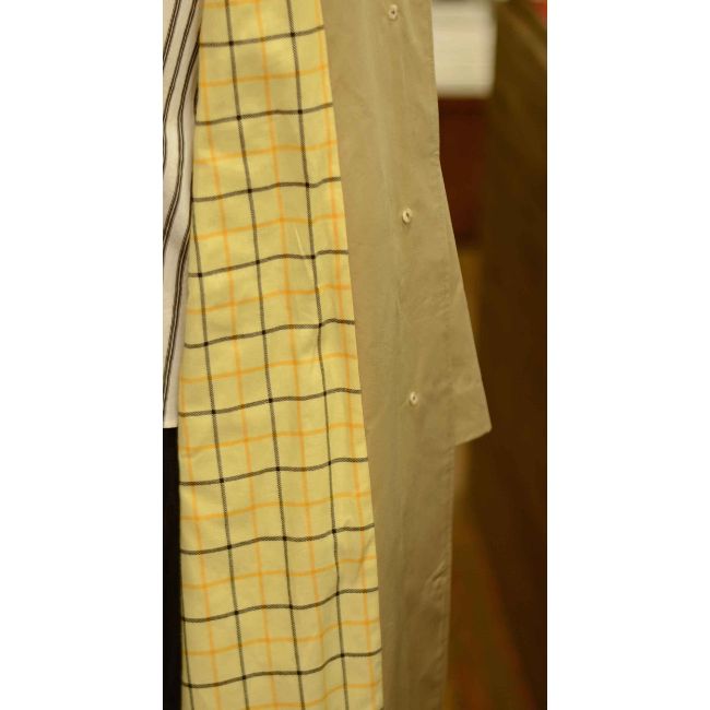 裏地は、袖裏は滑りの良いシャンパンゴールド色の高級サテン、身頃はイギリス伝統ファブリック、タッタソール。