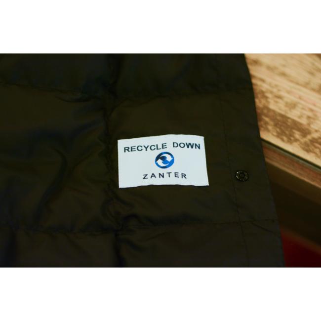 ダウンは国内で回収し、再洗浄した「リサイクルダウン」を採用しております。