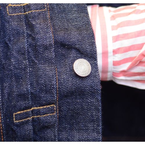 生地にはジーンズと同じく定番デニム13.7ozデニム、ジンバブエコットンを採用しております。