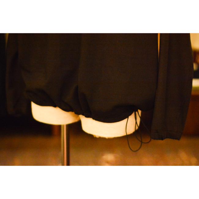 裾はスピンドルが施されシルエットをアレンジでき、両脇にはポケットが配されております。