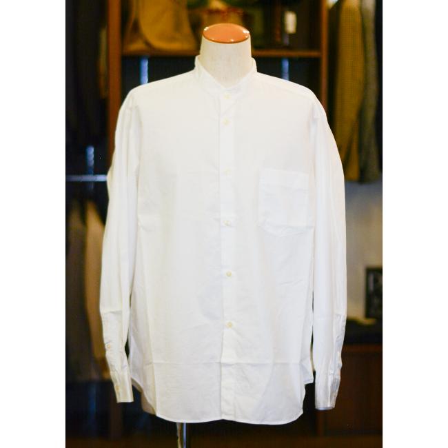 幅広いコーディネートにお使いいただけて、一枚でも、インナーとしても活躍するバンドカラーシャツです。