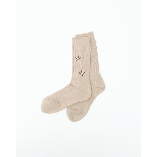 定番のリブパイルに刺繍を施したリブソックスです。