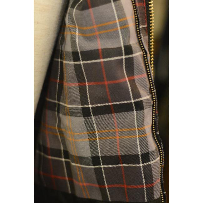 襟にはコーデュロイ生地の襟がつき、裏地にはコットンのタータンチェックが使われています。