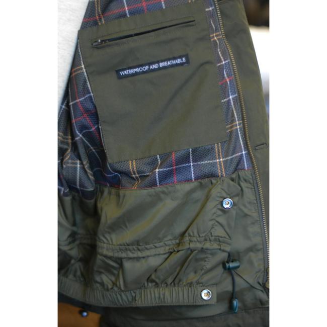 表地は、ポリエステル/コットンの混紡素材Barbourtech生地を使用しております。