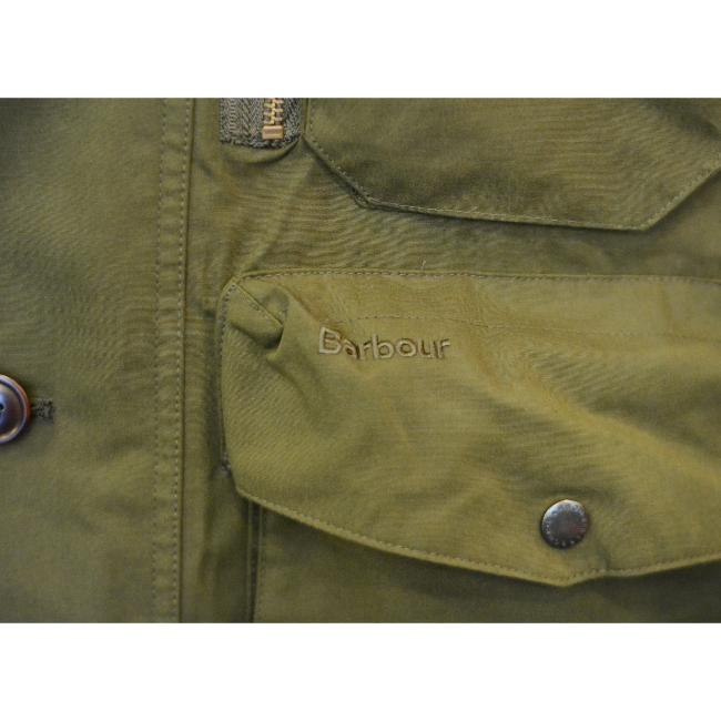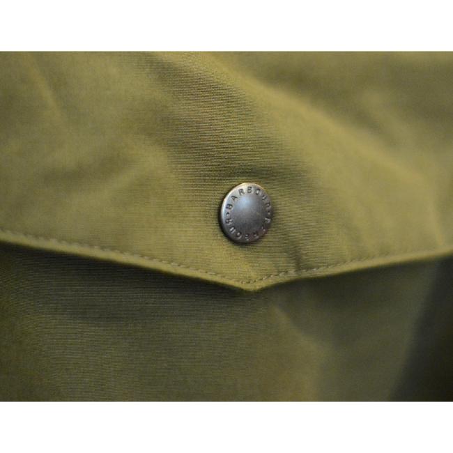 左ポケットフラップには、同色系の Barbour 刺繍が入っております。
