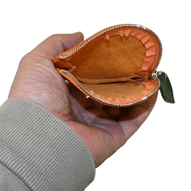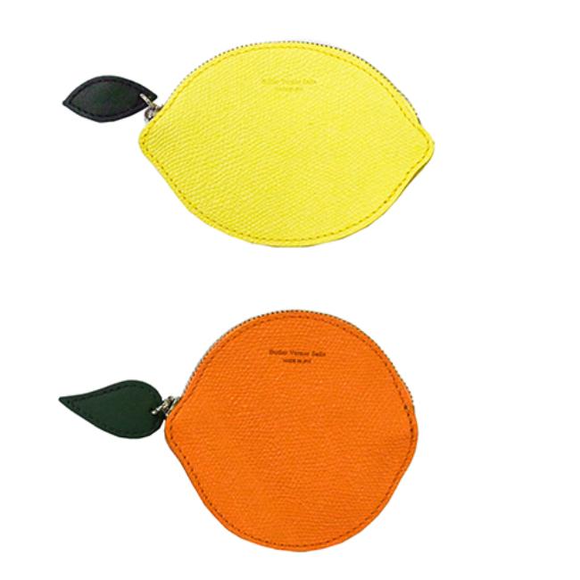 日本製の牛革を使用したレモンとオレンジの形の小銭入れ