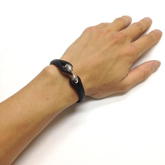 S字の留め具にデザインされたCramp・クランプのレザーブレスレット