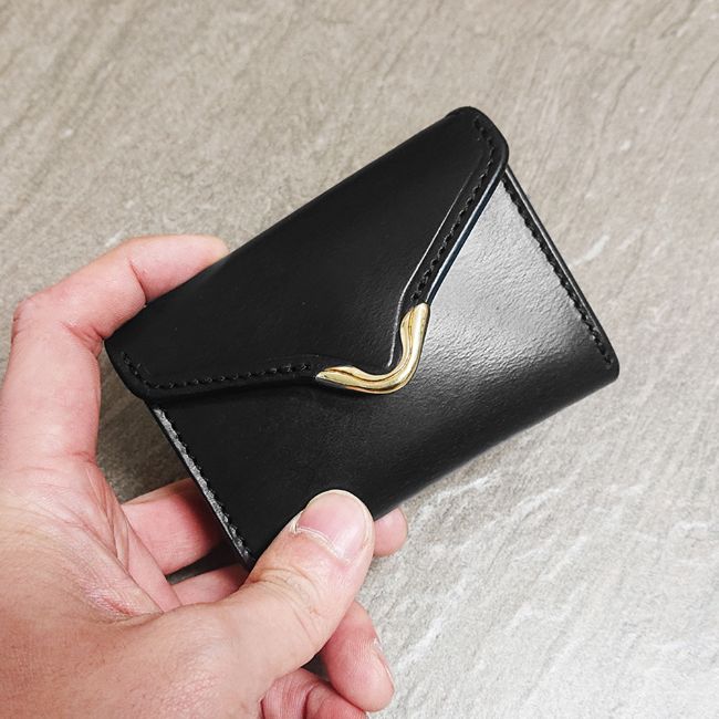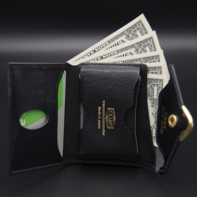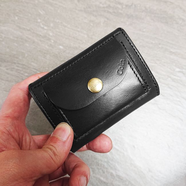 一般的なカードケースとほぼ同等のサイズ感ながらお札、小銭、カード全てを収納できるコンパクト財布です。