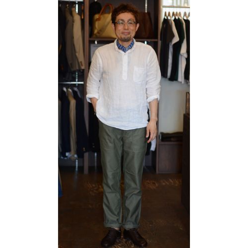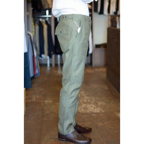 ウエストのアジャスター、フラットな尿素釦など当時のベイカーのディテールを踏襲しながらも、ジッパーフライで使いやすいように仕上がっております。