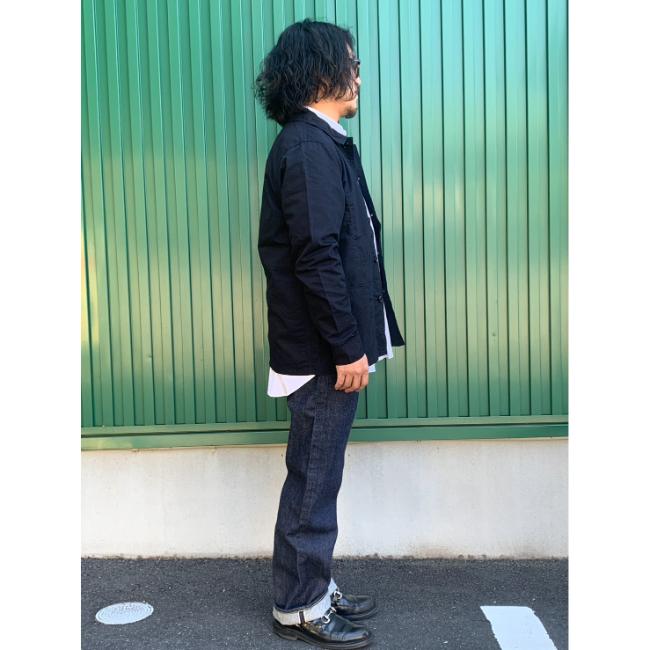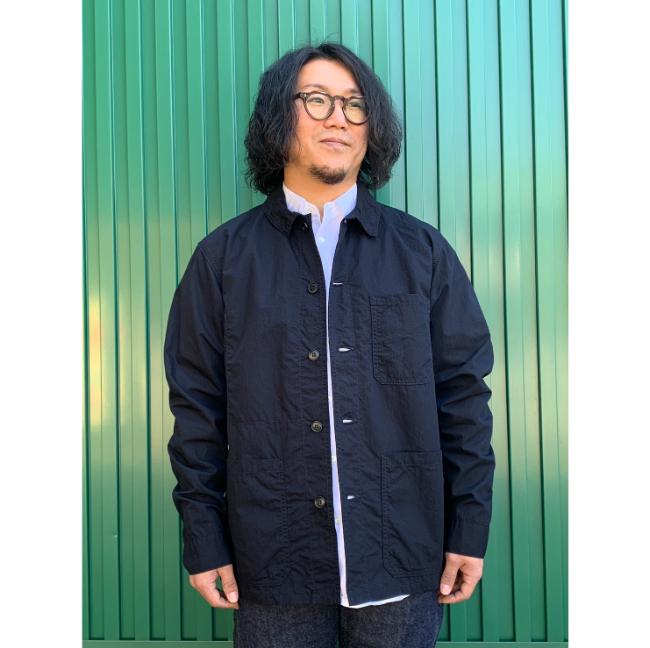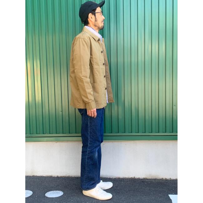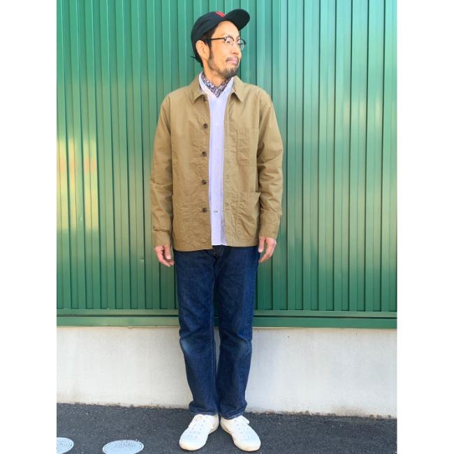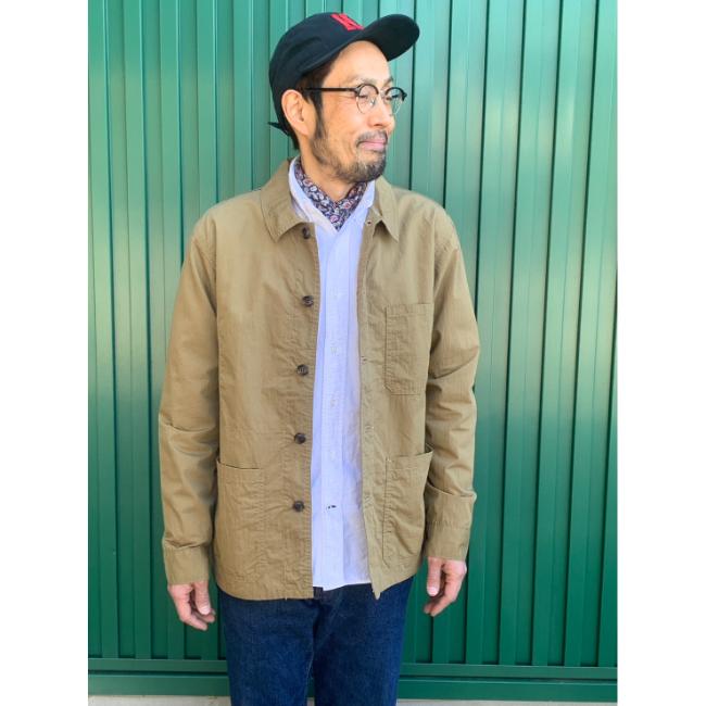 フレンチカバーオールをベースに、コットンナイロンの高密度ウェザー使用したシャツジャケットです。