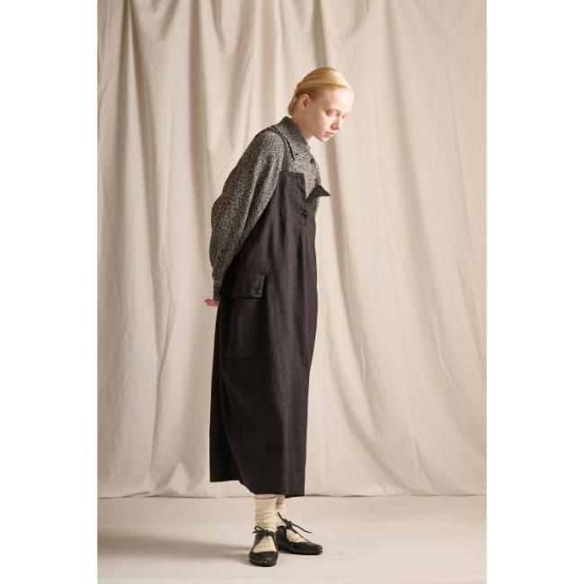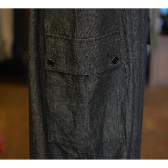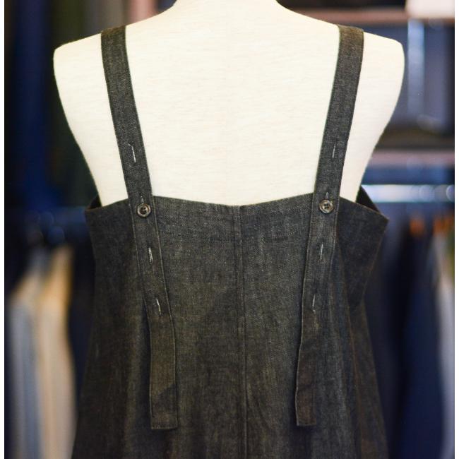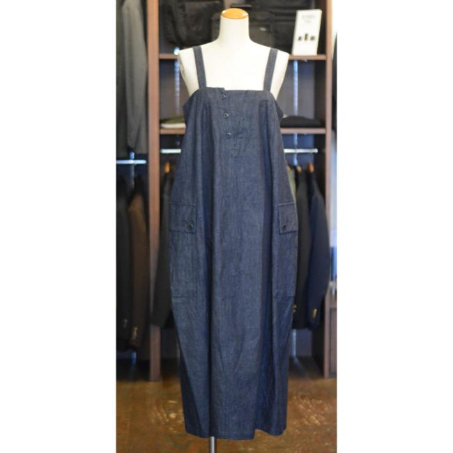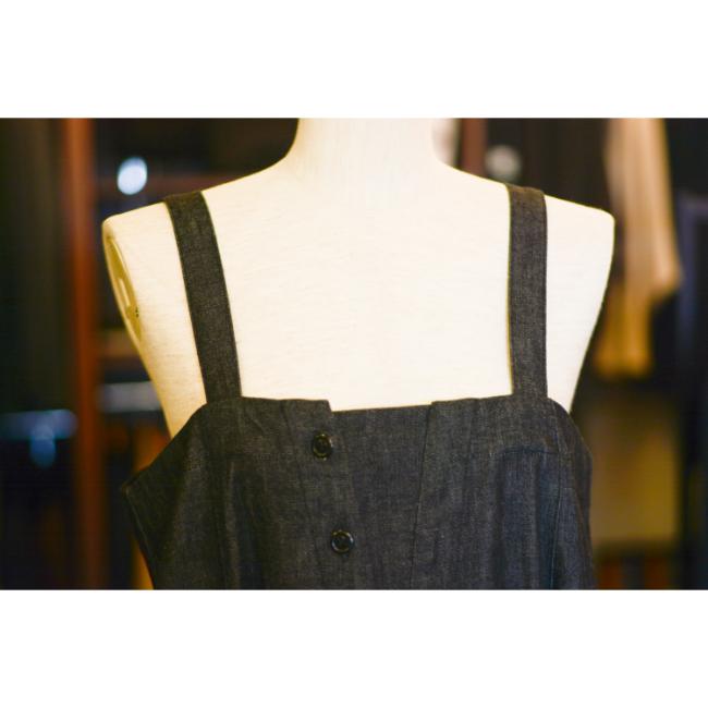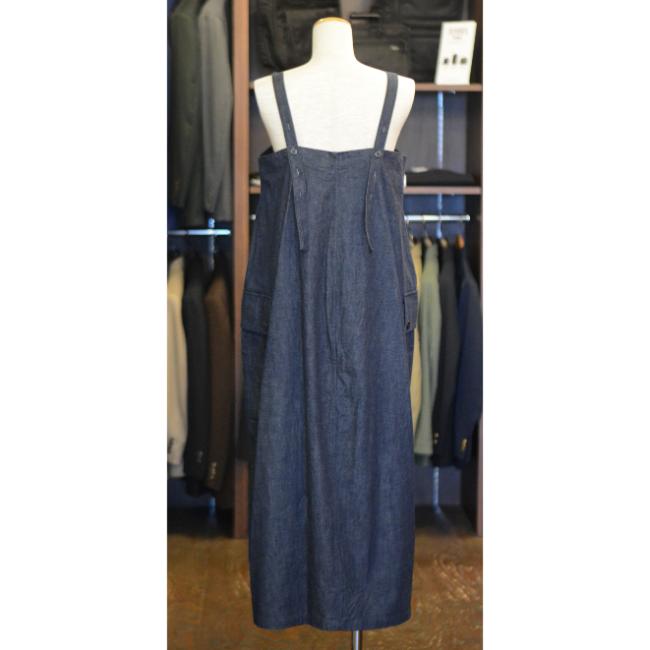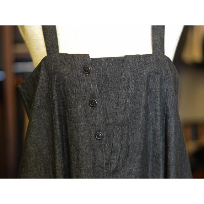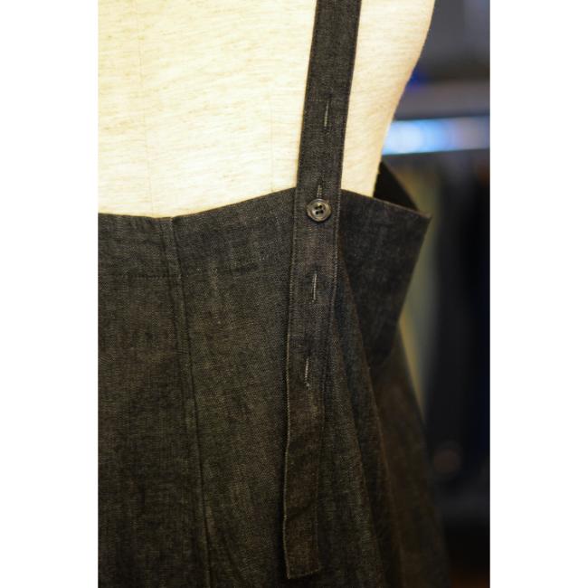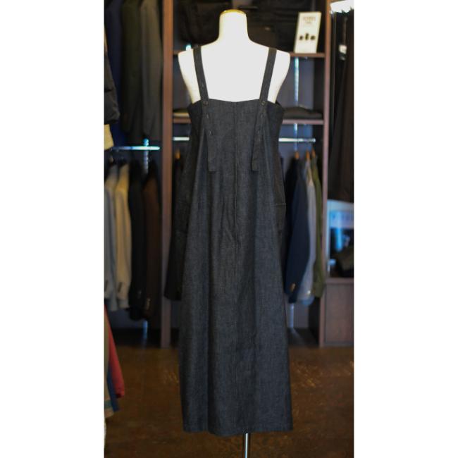 ライトオンスのデニムを使用した、軽やかな印象で着用できるロングサロペットスカートです。