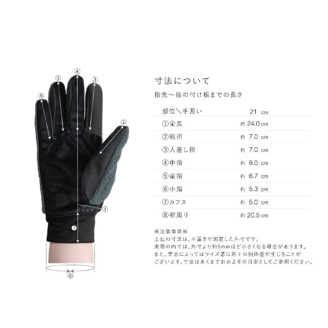 さらに、掌側の親指と人差し指には、導電人工皮革が使われているので、手袋をしたままでもスマートフォンなどの操作ができます。