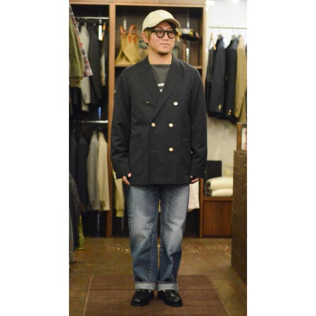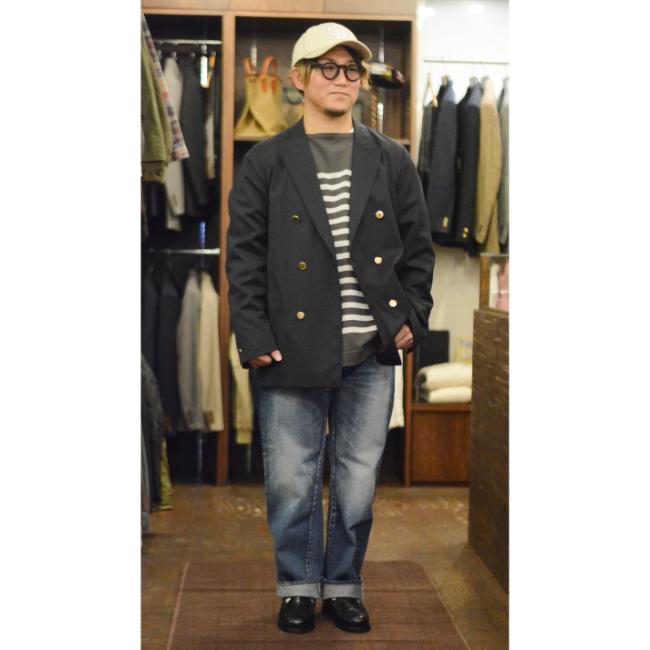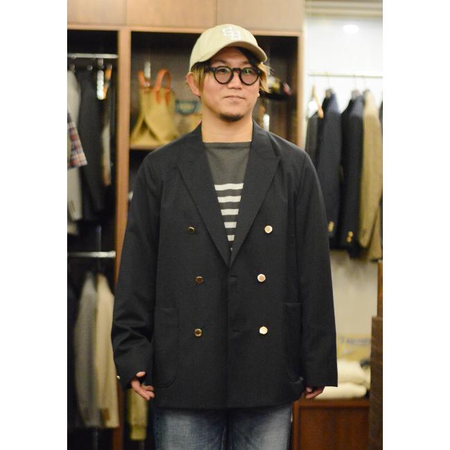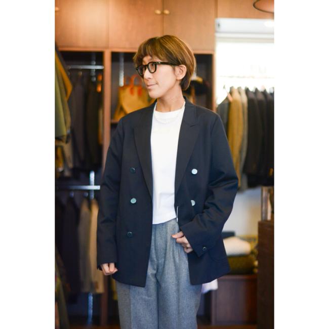 キチンと感がありつつも、Tシャツに合わせてカジュアルにもハマるダブルブレザー