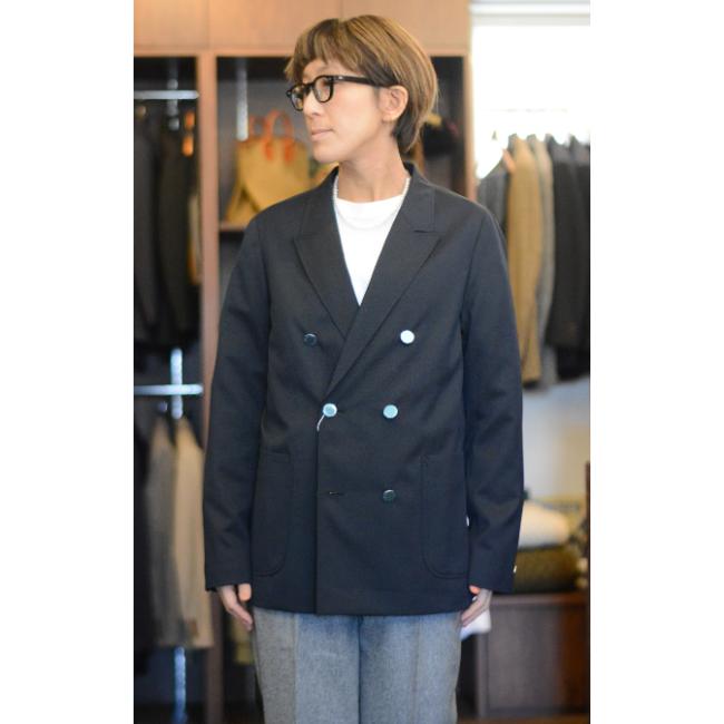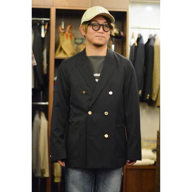 ピークドラペルのダブルブレストブレザーです。