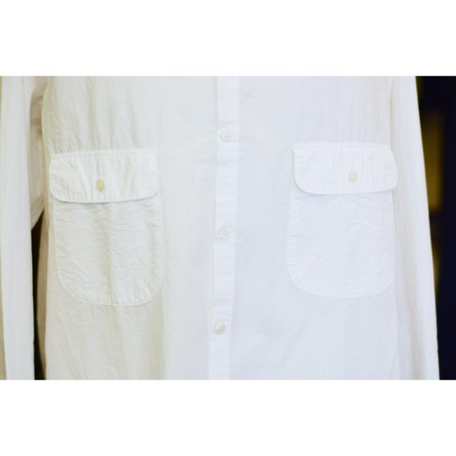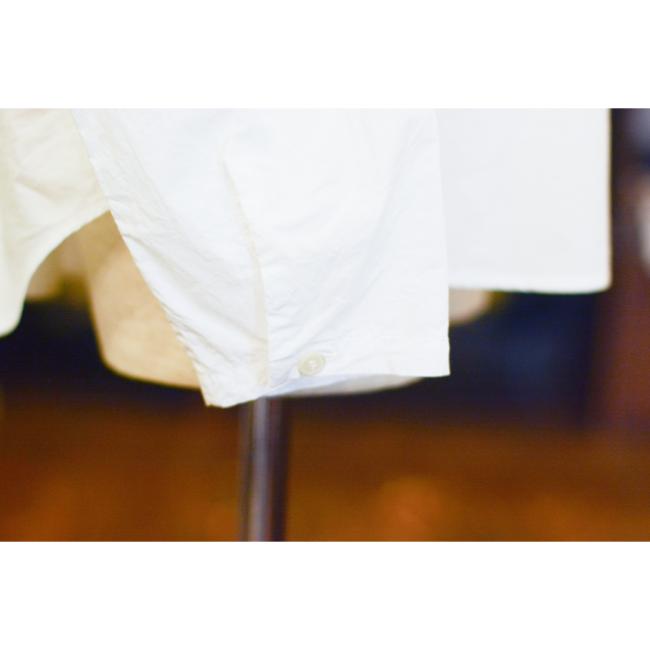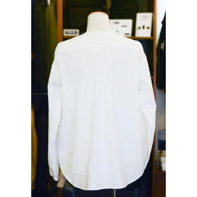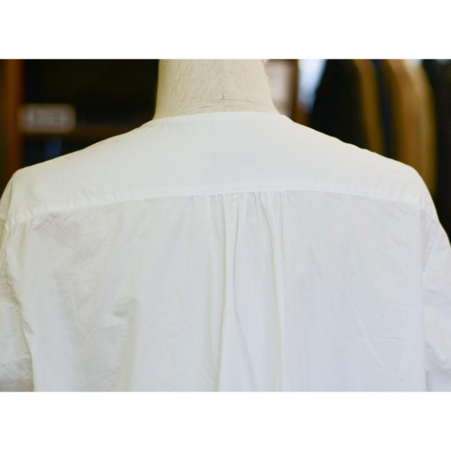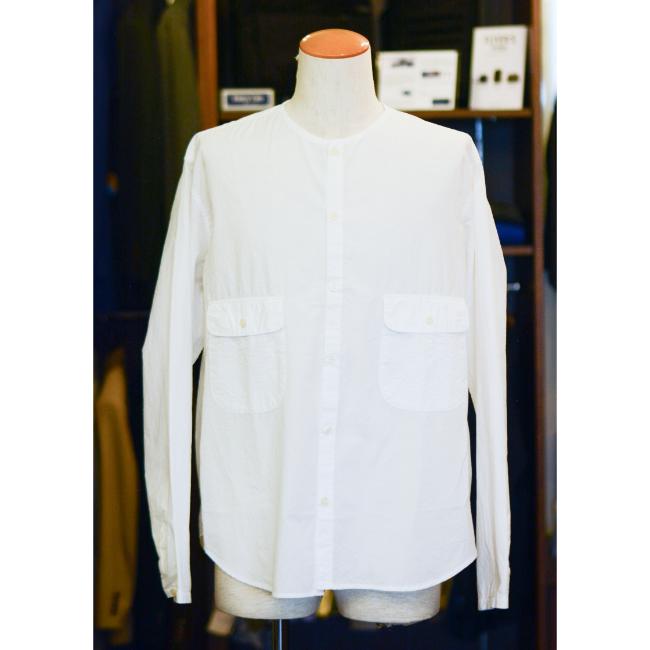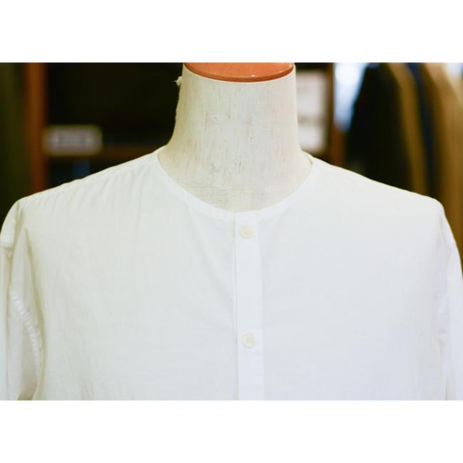 ワークシャツをベースに制作されたノーカラーシャツです。