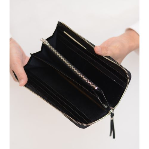 この財布は豊富な収納力が魅力で本体の開け閉めはL字式のジップです。